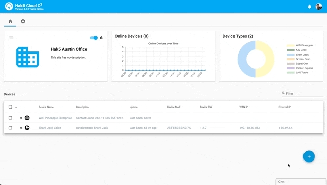 Name the device, select the device type (e.g. WiFi Pineapple, Shark Jack), add an optional description and click Add Device